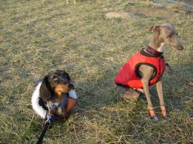 お正月気分ももう終わりだけど~昨年にさかのぼって~12月30日~食材の買出しや色々バタバタ忙しいその日~先日のペロちゃんのルアーコーシングの応援に行ってすっかりシエルも走らせたいっっと思っていた旦那さん~予約なしで行ける練習会を30日にやっていることを発見し~シエルだけを連れて~いそいそと出掛けて行った~ちゃっかりペロちゃんパパとも待ち合わせして~ なかよしコンビ~先日と同じ~みなとみらい地区で~ 今回100mを2回走ってみて~タイムを計測~シエルはドッグタイムレースで50mは走った事あるけど、100mは初めて!大丈夫かしら~?っと思いつつ、お家でやる事山ほどあって、あっと言う間に夕方・・・・・・・・帰宅した旦那さんとシエルに結果を聞くと~ この日は沢山のわんこが来た為~スタッフでない方も記録ボードのお手伝いをしていた為~18番 シエルはなぜか?ツェルに~2走目の11秒86はかな~り早かったらしく~スタッフの方に「こんな早いダックス見たことないですー!」っと驚かれたらしい~この日はアフガンハウンドや~ ダルメシアン~とか大きいわんこと上手にご挨拶出来ましたっ このわんこは、いつもお散歩で出会うダックスちゃんが頭をつつくとお腹を出して遊ぶわんこなんだって~ だからシエルを見てすぐに~いつものダックスちゃんにするよう~にシエルの頭をチョン!ってつついてみたでも残念ながら~シエルはいつものダックスちゃんではなかったので~チョン!されても「はぁ?」って感じだったので、ビミョーな空気が漂ったんだって~ダックスだぁー!とか同じ犬種って判別出来るなんておりこうさんなんだねぇ~この日のシエルの成績に~ペロちゃんパパも「シエルは早いと思ってました!」とすっかりうれしくなった旦那さんは年明け4日のルアーコーシングもペロちゃんとご一緒するとお約束をしてきたんだって~っという事で・・・・両家の実家訪問の翌日~眠い目をこすりながら、今度は私とブランも一緒にみなとみらいへ~ やる気な横顔?!この日のルアー しっかり確認!この日は仲良しさん達とマイペースさん シエルは他のわんこがルアーを見て走ってる時でも~ こんな感じでがっつりレースをっていうか・・・・「ぼくのルアー!!」みたいな感じ~レースに入り込むシエルの動画~ 今日のペロちゃんも準備万端だね~シエルのレースの動画ゴールしてからもルアーを追いかけちゃって大変でしたっタイムは一回目が12秒03 二回目11秒77 前回の記録を更新しました~ブランも一生懸命走って~タイムは17秒~ コケコケしながら走ってよく頑張りましたっ今回参加のわんこの中で一番遅かったねぇ~ペロちゃんは8秒23!! 早いねぇ~最新記録はここです~みんなよく頑張りました~最後は表彰式~ 優勝は MIX犬のビフちゃん その次になぜかシエルが呼ばれたよぉ!!!!特別賞だって~!!表彰状とおいしいおやつとメダルを頂いたよぉ!!! 大型犬が多いからメダルが地面についちゃってて~笑われちゃった~ちゃんと短くなおして~こんな感じ~ あら?ちょっと誇らしげ?帰ってきたら、ぐったりだったワンズ~よく頑張りましたっ。また記録更新するのかなぁ~?