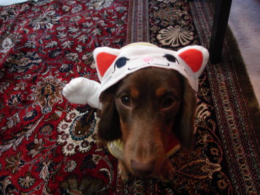 昨日はシエルのお話だったので、今日はブランを主役に~これ・・・・・・・年末にお店で見つけて買いたくなったコアラ 最初見た時~「あれれ~?こんなのアリ???」とか笑ったけど~着せてみたら~ あらっ!コスプレ怪獣ブランさん ガン黒コアラ~違和感あって面白いけど、着こなしてません?!っと思ったので~シエルとお揃いにしようと思ったけど、それはさすがにとてーもおかしくてそうだっ!ここのお店のお洋服をもらった みっくすさん家のミニーちゃん と勝手におそろいにしよう!っと思って~送ってみた~みっくすさんは忙しいのに、すぐにブログに載せてくれて~ミニーちゃんかぶりものイヤそうだったけど、かわいいコアラさんになってたぁ~!!よしっ!ブランもかわいいとこなんとか撮って見よう! 横顔だと~??色々撮るけど、かわいい~にはカメラマンの腕とモデルに問題があるようで~ 飽き始め~ 脱げかかり~!! かぶせ過ぎ~ふっ。所詮・・・・美しい人はより美しく~そうでない人はそれなりに~っとしか撮れなかった~みっくすさんは「お揃いで並んでお写真撮りたいねぇ~」って言ってくれたけど・・・・とほほ~ミニーちゃんのレベルには程遠い~ブランだったのであったーーーーーガクッみっくすさん~がんばったけど、これ限界でしたっ!ごめ~ん!!!!
