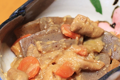 今日から旦那さんは韓国出張です。次帰ってくるころにはすっかり寒くなっているものと思われ。肌掛け布団を干して片付けた。パジャマも洗って、お片づけお片づけ。いない人のモノはどんどんお片づけっ!!昨日のアド街は本川越。昨日、今日と川越祭りなのでそれにちなんでのようです。けっこう最近できた店とかは知らなかったので「ここ今度行ってみようか」なんて言いながら見ていました。今年は市政90周年で山車が全て勢ぞろいするとか言ってましたね。大混雑するので今年は行きませんでした。アド街でお祭りの女性たちの特集を見ながら旦那さんが「でもこの人たち、どれだけ地元の人かわからないけどね。」とぼそり。旦那さん曰く、女性の場合はプロの祭り師みたいな人たちがいてお祭りの時にはお金を払って手伝いに来てもらうケースが多いのだとか。初めて聞いたけど、そういう職業もあるんだね。で、タイトルの炊飯器でモツ煮込みを作ってみました。炊飯器は圧力炊きだからモツも柔らかくなるかなと思って。事前に茹でこぼしと下茹でで1時間煮込んじゃったから更に炊飯器で炊いたら柔らかくなりすぎた。まぁ成功の域なので、旦那さんが帰ってきたら振舞ってみましょう。◆◇◆◇ 炊飯器でモツ煮込み ◆◇◆◇材料豚モツ 250g大根 15cmくらい人参 1本こんにゃく 1枚ネギ 適当赤味噌 大さじ5砂糖 大さじ4みりん 大さじ41.モツを下茹で。ネギの葉っぱ、生姜、酒を適当にブチ込んで茹でこぼししつつ茹でる。2.大根、人参はいちょう切り、こんにゃくは薄切り。 下茹でしたモツと他の材料と調味料を炊飯器にブチ込む。ひたひたの水を加えてスイッチオン3.炊き上がったら味を調整して完成。 私はぽってりしたほうが好きなので、中身を全部鍋に移して強火で煮詰めて煮汁を飛ばした。下茹でを1時間したらモツが柔らかくてとろける食感。私はもっと噛みごたえがある方が好きなので次回は30分以内にしてみようと思います。正しいモツ煮を食べたことが無いので本来どんな味なのかは不明。多分こんな味で良いと思うんだけど。今度は甘辛醤油味で作ってみようかな。牛すじの煮込みみたいなイメージで。…牛すじの煮込みも正しい味は食べたことが無いので想像ですが。http://plaza.rakuten.co.jp/wandarou/