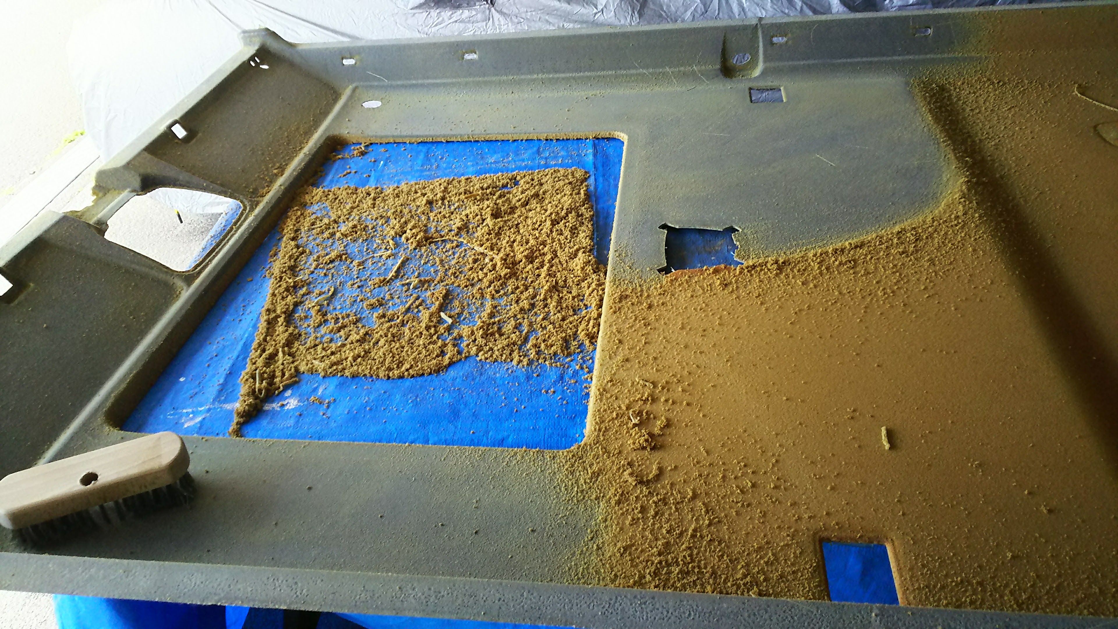 劣化したウレタンを、ひたすら擦り落とします。