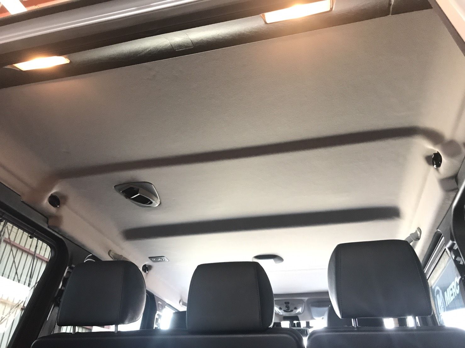 お得意先から ベンツG500の天井張替えのいらいをいただきました。