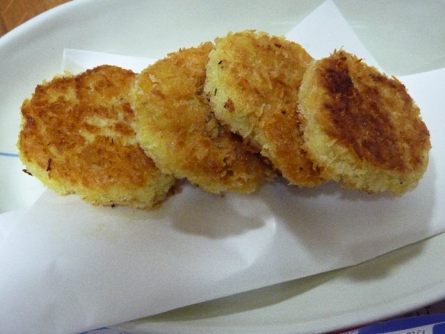 見かけは前に紹介したトスカーナのソイバーグに似ていますが、中身は全然違います。実はすりおろした山芋にジャコを混ぜ、衣をつけて揚げ焼きにしたもの。長い奴や掌の形をした奴じゃなくて、捏芋(つくねいも)ないし大和芋(やまといも)と呼ばれる丸い種類のものを使っています。山芋の中でも最も粘り気が強く、食感も濃厚な種類だそうです。生協の産直野菜のパッケージに入っていたものですが、とろろ汁なんかでは当たり前すぎてつまらないので、こういう調理法を試してみました。結果としては素晴らしい出来で、我が家の定番料理のひとつになりそうです。しかし、今年は食べ物ネタばかりですね。