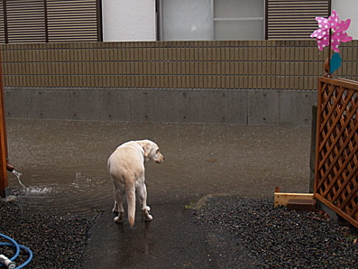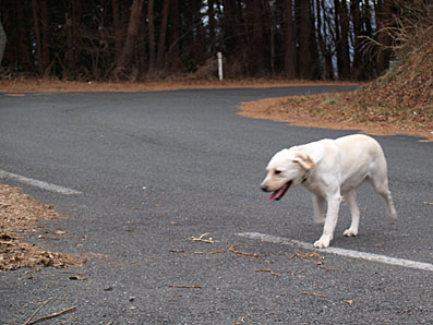すっかりご無沙汰してしまいましたが、今年もよろしくお願いしま~す♪暖冬で雪が無いのも残念ですが、おかげで相変わらず観光道路で走ってるチェリーです!交通量も少なくアップダウンが激しいので雪が積もったらほとんど通行出来なくなってしまいます。東北の冬だというのに雪どころか雨ばかり・・・しかも降り過ぎ!先頃の雨ではアッと云う間に家の前の道が川になってしまいました!!さすがのチェリーも泥水は好きじゃないみたいです。この後近所の方と下水に流れ込む枯葉の除去作業に一時間ほど費やしました。チェリーの元彼、ヘリー君と遊んできました!チェリーを飼いはじめた頃、ヘリー君とで可愛い子犬が欲しいと思っていたんですが安易に出来ることではない問題の多さに断念・・・元彼となりました♪ヘリー君のパパは近くの鮭の孵化場で働いているんですが、孵化場はフェンスで囲われているのでヘリー君を遊ばせるために連れてきたみたいで、お誘いのお電話を頂きチェリーを連れて行きました。走り回るには十分な広さ!走ると云うよりほとんど逃げてます~!ヘリー君はその気?・・・満々!一生懸命にチェリーを追い掛け回します!その目的は!(笑)一度この体制になるとガッチリ膝を押さえ込まれてチェリーも逃げられないみたいで、3度ほどヘリー君のパパが首根っこをつかんで引き離しました(汗)チェリーもヘリー君の考えが読めたと見え、後ろに付かれないように走り回ったりクルリと回転したりしていました。そして見たことの無い行動をしました!!!牙をむき出し「カチッカチッカチッツ!」っと歯を鳴らしたんです。ヘリー君が迫ってくるとクルリと振り向き、牙をむき出して「カチッカチッカチッツ!」何度も繰り返す様子に「へぇ~!こうやって嗜めるんだ~」・・・と、呑気な飼い主たちでした♪仕舞にはヘリー君も疲れてしまい諦めたようすでしたが、逆にチェリーが遊びの催促!ヘリー君も川で泳いだり山で走り回ったりしている肉体派なんですが・・・チェリーもジョギングで体力付いちゃったみたいです♪それでもやっぱり仲良しではあるようで、楽しい時間を過ごしました。最後にヘリー君のアップ!黒ラブって写真撮るのが難しい~!ヘリー君であわせるとほとんど露出オーバーになってしまいます。何枚か撮ってやっとまともに撮れました。。。