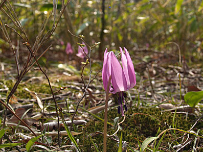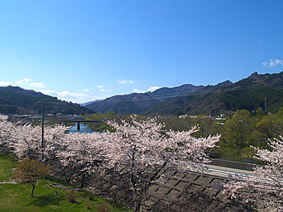 もう桜の散った地方の方も方が多いと思いますが、コチラはやっと見ごろになりつつあります。住んでいる町から20分ほど上流、毎年キャンプをする場所なんですがカタクリの群生地があります。初めて見たときはちょっと感動したカタクリの花。GWはココでキャンプの予定♪ココから少し行った「ドングリ広場」で葉わさびと行者にんにくの鉢植えを4本(1本100円)買ってきました。昨年は釣りの合間に行者にんにくを探したんですがほとんど採り尽くされているらしく、見つけることが出来なかったんです、まさかこんなところで100円で売っていたとは!葉わさびはその日のうちに頂き、行者にんにくは裏庭に植えました・・・殖えると良いなぁ~♪娘は真新しいテニスラケットを手に、振りたくて振りたくて♪どこか振れる所はないかと考えてみたら・・・・・ありました!橋を越えていくとすぐの河川公園に円形のアスファルトになっているところが。早速チェリーのお散歩を兼ねて行って来ました♪ボールがおもりにゴムで繋がれていて戻ってくるんですが、なかなか上手く戻ってきません。私もやってみたんですが、おもいっきり打たないとちゃんと戻ってこないものなんですね!しかも結構アセ掻きます~。手首が痛いといいながら、30分以上も頑張る娘でした♪チェリーはそんなことはお構いなし!春の香りを楽しんでおりました~♪咲き始めたとおもったらあっという間に見ごろになっている桜でした!写真撮りに行きたい~~~!!