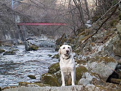 夕方自転車でお散歩しました。自転車初日には、急に止まったチェリーに引っ張られて転倒しそうになったんですが大分慣れてきました。急に止まられてもバランスを崩さなくなりました♪軽快に走っているチェリーを走撮!梅の花が咲いていました。冬らしくない冬の後にも春はちゃんとやってくるんだね~。母校を通り過ぎ折り返してくると、200メートルほど先にワンコの姿!ジョン君に似ているけど飼い主さんの体型が・・・今日はママさんがお散歩させていました。ジョン君とチェリーは挨拶もそこそこにいきなりバトル!落ち着いたところでジョン君の得意技!(笑)前回に続いてまたもやペロペロされちゃいました~~~♪もうすぐ2歳のジョン君!すっかり大人なんだけど、どこかあどけないオメメ、若いって良いねぇ~。飼い主が立ち話しているうちに陽も傾き、来年でなくなってしまう母校をやさしい光が包んでいました。(今の3年生(2クラス)が卒業すると取り壊され電子部品の工場が建ちます。私が通っていた頃は8クラスで3学年、1000人近い生徒が在籍する学校でした。その前はもっと多かったみたいですが、新日鉄釜石の縮小とともに釜石の人口も3分の1ほどになってしまいました。)河原の木も紅く染まっています。お散歩から帰ると、判りやすいチェリーの表情(笑)楽しかったらしい♪