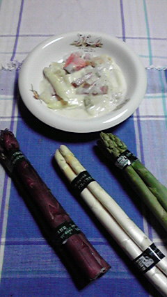 白アスパラと鮭を入れた、北海道グラタン 作りましたU^q^U
