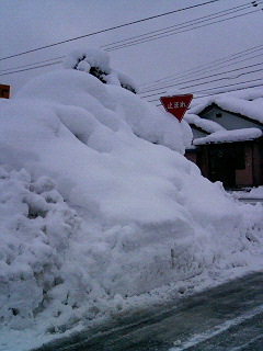 きょうは、久しぶりに青空が見えました。こ~んな感じ そして、こ~んな感じ さらに、こ~んな感じ 車の助手席から、携帯電話のカメラで撮ったので、あまりはっきりしてませんが、気持ちの良い天気だったのは、おわかりいただけますでしょうか??こんな日は、「買出し♪ 買出し♪」です。明日から学校が始まります。お昼のお弁当と、夕飯をびっちり作らなければならないので、冷蔵庫を、満タンにしなければ。。。。また雪がひどくなると、買い物、行けなくなっちゃいますから。それともう一つ、除雪の用具を探しに行かなければならないんです。うちの店、一応「薬局」なのですが、何でも売っている「よろずや」(田舎ですから、、、)実は毎年、「スコップ」「車の雪落とし」そして「ママさんダンプ(ご存知ですか??)」も、売ってます。その仕入れ方法は、、、、「冬の初めに、ホームセンターで買ってきて、並べておく、、、」という、いたって原始的なもの。ところが、今年は、早い時期からの、思わぬ「どか雪」のため、目算を誤った。。。。。12月の初めに、「今年は原油の値上がりで高いね、、、」などと言って、あまりたくさん買わなかったのです。そこにどっか~んと雪が来て、うちにあった除雪用具は、あっという間に売り切れ。あわててあちこち探したのですが、時すでに遅く、「ホームセンター」の店頭には、「除雪用具の入荷は、未定です」の張り紙が。。。。本当は、うちの「ママさんダンプ」もうすり切れてひどい状態だったので、「自家用」に一つ買っておいたのですが、気がついた時には、店の誰かが、お客さんに売ってしまっていた(誰だぁ~~売っちゃったのは!)今は、ママさんダンプは、家の外に出して置くと盗まれてしまうくらい貴重品になってます。先日は、ホームセンターに「スコップ」が並んでいるのを見つけたので、さっそく購入。店頭に並べた、、と思ったら、もう売れちゃった。(あ~あ。。。)ここまで来たら、高かろうが、安かろうが、関係ないみたいです。今日一日で、「スコップありますかぁ??」「ママさんダンプありますか??」の電話が、10件以上あったとか。(薬の質問よりも多い所が、こわい。。。)そこでダンナさんが一言、「ママさんダンプはないけど、ダンプみたいな勢いのママさんならおりますけど・・・・」(あははは、、、汗)どちらも頼りになる事には変わりありませんが(笑)ママさんダンプは盗まれてもダンプみたいなママさんなら・・・なぁ~んて