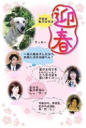 今年の我が家の年賀状を、載せてみました。本年もよろしくお願いいたします。今年の私の目標!「間抜けなことをしない!」こと、、です。31日に、自分でも嫌になる事を2つほどしまして、、、、。2006年は、ぜ~~たい、こういう間抜けな事はしないぞ!と誓いました。えっ??何をしたのかですか??恥ずかしいですが、、、、、ひそひそ、、、とお話しますね(笑)1つ目は、大掃除の時、吸入剤(スプレー)の廃棄薬に穴をあけていました。なにも、そんなこと、大晦日にする必要はなかったのですが、いつも置いてあるのが、気になっていたもので、せっせとあけてました。その中に、「ウルトラマンの泡せっけん」があったのです。スプレーを押すと、あわあわが出てくる、一昔前に流行ったせっけんです。振ってみるとまだ中身があります。普通は、中身をすべて出してから、穴を開けます、、よね。それなのに私、そのまま思い切って、穴を開けました。結果は、、、、、笑。ちょっと、出遅れた「サンタクロース」です。頭、顔、洋服、すべて、開けた穴から飛び出した泡で、真っ白。よくお笑い系のテレビで、あわあわになっている人が写ってますが、あんな状態。その状態で、周りを見回しました。あ~~、調剤室に、誰もいない大晦日でよかった、、、、です。急いでタオルで泡をふき取り、何事もなかったかのような、そんな顔をしてました。そしてもう1つ。これは、疲れて家に帰ってから起きた事です。もう、くたくたになっていたので、「お風呂~~」と、自分の寝室で裸になり、お風呂場に突進。がらっと戸を開けると、お湯がないじゃないっ!(汗、、)その時思い出したのが、子供達の言葉。「お風呂、お湯を落として、掃除しておいたから、、、」真面目に掃除をしてくれた子供達、、。なぜ、今日だけちゃんと言う事を聞くの??仕方ありません。とりあえず、パジャマを着て、お湯を張りました。今日、弟に会ってこの話をしましたら、「あ~~、ぼくもよくある、あるっ!」って。やはり、「血」でしょうか??今年は、慌てず、しっかりと物事を見極めて!をモットーに、がんばりますっ!!おみくじも大吉でしたし(笑)