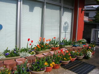 最近、仕事が忙しくて、帰るのが遅くなります。昨日も、吸入器の配達を済ませ、家に着いたのが8時半。玄関の鍵を開けていると、電話の音慌てて家に走りこみ、受話器を取ったのですが、出た時にはすでに切れてました。しばらくすると、また電話。出ると、店にいる主人から。。。「今、塾から電話があったんだけど、、あ~ちゃん(下の子)、今日塾なのに 来てないって」「えっ?!」誘拐?事故?家出?よからぬことが頭に次々浮かんでは消え、浮かんでは消え。ああ~~~~と、真っ青になり、下の子の部屋をのぞくと、、、、下の子、平和な顔をして、あはは、、良かった。。。どうやら、日中、新一年生のクラブへの勧誘で疲れちゃったみたいです。この下の子が、首をなが~くして待っているのが、お姉ちゃんからの自分宛の電話これがですね、、、まったくかからないんですよ下の子がお姉ちゃんからの電話を取ると、「な~んだ、、あーちゃんか、、お母さんに代わって」と、つれない言葉が返ってくるんです。あまりに寂しがるので、5月の連休に、下の子を上の子の所に送り込むことにしました。「電車の乗り換えわかる?みんなが行く方向に行けばいいから」と下の子に言うと、「え~~~~~っ」仕方がないので、「お姉ちゃん、あーちゃんを途中まで迎えに来てよ」と上の子に言うと、「え~~~~~~っ」結局、私がお供をすることになりました上の子の部屋には、2人分の寝具しかないので、3人で行くと、1人、寝具なしで寝ることになります。誰が床で寝るか、、で、またひと悶着ありそうですシュラフを送ろうか、、という話も出ていますが、、、。きょうは暇でしたので、店のプランターの手入れをしていました。チューリップの開花まで、まだ少しかかりそうなので、寂しいプランターですが、写真を撮ってみました。チューリップの開花が待たれます