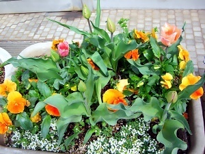 今、毎朝届く地方紙の1面で、「いじめ」の特集をしています。不登校になったお子さんの話がシリーズで紹介されているのです。実は私も中学の時、軽い「いじめ」にあったことがあります。その時、いじめの先頭に立ったのは、同じ部に所属する、ごく普通の、まじめな生徒でした。そしていじめのきっかけというのが、「彼女にテニス用品を貸さなかった」という、今から思えば、些細なできごとでした。その時彼女はすごく腹を立て、クラスの女子に私を無視するように働きかけたのです。それでしばらくは、クラスの誰も、私に話しかけてくれませんでした当時、中学生の私にとっては、学校に行きたくなくなるほどつらいことだったのを覚えています。今でしたら、図太く、好きに無視していたらいいわと思えるのですが、、でもその頃は、こういう状態に陥っていることが恥ずかしくて、とても両親や先生には話せなかった記憶が。幸せだったのは、彼女が、途中でいじめるのに飽きちゃった、、事。そのおかげで私は、ちゃんと学校も卒業し、今があります今から考えると、いじめた本人は「いじめた」という感覚が無かったのではないかと、、、。上の娘が中学校でいじめられた時も、きっかけは些細なことでした。そして、新聞に掲載されているのと同じパターンで、体調を崩し、学校に行けなくなったのです。こちらの方も、いじめた方は、「いじめた」という感覚なし。いじめられた方も、我慢に我慢を重ね、学校を見ると吐き気がして、熱が出る、という状態になるまで、親には黙っていたのです。娘から、学校でいじめられていると聞いた時も、私には信じれませんでした後でよぉ~く考えると、娘から、SOSの信号が出ていたのですけど、当時は気がつかず。親、、失格。。。「いじめ」は、早めに気がつけば、「いじめられた方」も「いじめた方」もひどく傷がつかずに解決できることが多いのではないか、、と感じるのですが、、、、、。誰が気づいてやれるか、、、、。やはり親ですかね。。1週間前に写真をアップした店のプランターチューリップが咲いて、少し明るくなってきました。あまり変わらないかも。。来週は、チューリップも満開になるかと思います。