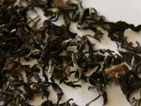 え~、先頃ダージリンを東方美人のように淹れていただくと、非常に香り高くサッパリとした甘みも感じられ、美味しいということをご紹介したのでございますが、本日は東方美人をお紅茶のようにいただいてしまいました。と、申しましても、お湯に対するお茶葉の割合を減らしただけで、あとはちょっとぬるい目の温度で、5分程置いて…と、まあ、このようにしていただくわけでございますが…。よくよく考えてみますと、いつものインチキと同じでございますね…。しかし、この東方美人、洋菓子と合わせてもやはり良いお茶でございますね。つい、一昔まではお紅茶といえば、ミルクティー一辺倒だったそれがしでございますが、最近お紅茶のいただき方にも幅が出てきたように思います。というのも、このダージリンを見た時、「東方美人のような茶葉…」と思いましたのが、きっかけでございました。 葉の大きいのが東方美人でございます。色やゴールデンチップの入り具合など、そこはかとなく似通っておりますが、ダージリンのほうは葉が細かく裁断されているのがお分かりかと存じます。これでも、どちらも同程度の縮小率なのでございますよ。ダージリンのマスカットフレーバーは、華やかさとともに爽やかさをも感じますが、東方美人の方は蜜の香りと、しっとりまったり、よく熟れた果実のような香りでございます。おや、この、ちょっと塩味の効いたマカロン、これはちょっと、いいではありませんか!この鄙にこんなマカロンを作っているお店があったとは…びっくりです。