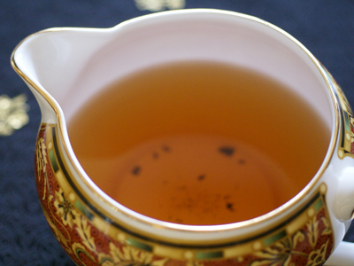 2005年の蜜香烏龍、今日で五体満足?な状態の茶葉は最後でございますね…。圧倒的な香りと、何時までもしっかりとしたお味が持続するボディで楽しませてくれたお茶でした。そういえば、このお茶は最初の一杯も梨花さんと一緒にいただいたのでしたねぇ…。そうですわ。あれは、1月27日のことでした。。。あれから…いろいろとありましたねぇ…。そうでしたね。。。さすがにお茶葉もしまいのほうになってまいりますと、細かいものが多くなりますね。あとはBOP状態のものが残る訳ですが、これはこれで使い道があるといえばありますから…。お茶漬けにでもしてみましょうか。えっ?はちみつ風味のお茶漬でございますか?鮎の甘露煮など載せてみたら、意外とイケるかもしれませんよ(笑)…まだ暑いですから、冷たくしてたくさんいただくのもよろしいのでは?そうですね。ケド、それではあまりに平平凡凡のような気がしないでもないですが…。しかし、アレですね。このお茶は、五煎目を過ぎてもお味がしっかりしてますね。香りはやはり一煎目が一番ですが、花の香が控え目になると、この蜂蜜のような独特の香りが実はボディに支えられているのがよく分ります。ジツは、5月にも意翔村の茶仙さまのところへ伺って、この蜜香烏龍を試飲させていただいたのですが、今年の春茶はボディに比べるとちょっと香りが弱かったような…。それで、つい、求めなかったのでございますが、しかし、なくなってしまうと一抹の寂しさが込み上げてまいります…。こう眺めてみますと、こう、葉の周囲がしっかりと赤くなっていて、かなりしっかり発酵しているカンジですね。あと口に残る、そこはかとない酸味はそのせいですのね。お茶っ葉を引っぱり出してみますと…これは1芯2葉よりももっと育ったトコロで積まれているようでございますね…。葉が一枚一枚に千切れているのは、柔捻工程でしっかりもまれたからでしょうか…。焙煎は、普通の高山茶などに比べるとしっかりしているカンジ…。ああ、お名残り惜しい…。あら、白椿さま、聞いておりますわよ。また台湾へおいでになる計画が進行中だとか…。そうなのですよ、ジツはそれがし、マイレージ成金でございましてね。特典航空券でちょっとこう、羽を伸ばしに?行こうと存じまして…。それがちょっと聞いてくださいよ!この6月からというもの、関空発着の某航空会社便が今までの特典交換マイル数では発券していただけなくなりまして、それがし、名古屋で乗り継ぎなんですよ!しかも名古屋だと、前後泊を付けないとダメなんです。はぁ~、世の中どんどん住みにくくなってまいりましたねぇ…。