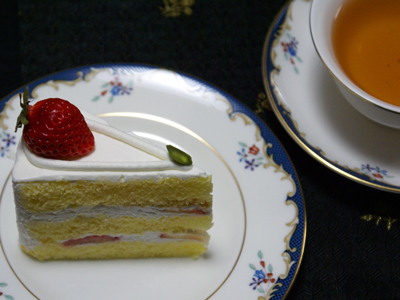 最近お気に入りのレ・ガトーのイチゴショートを、本日はお紅茶風に淹れた東方美人で。ここ数年、イチゴショートなどという、いわゆるスポンジに生クリームをはさんだだけのケーキなど、いただいたコトがなかったのですが、先日このレ・ガトーのモンブランをいただきました折、中に仕込まれておりましたジェノワーズの美味しかったこと!で、ちょっと感動いたしまして、それならばイチゴショートも美味しいかも…と、本日のおやつと相成りました。このいわゆるスポンジは、卵黄が少し多い目のような気がいたします。ただ生クリームをなめるといったカンジではなく、スポンジをしっかりと味わって欲しいショートケーキと申しましょうか。シロップもほとんどうたれていないようで、スポンジの粒子の一粒一粒は大きめなのですが、それが口のなかでふわっとほどけるカンジと申しましょうか。270円という価格設定も、高感度大でございます。しかし、どうせならもう少し手の込んだフランス菓子らしいケーキのほうがいいような気もいたしますが…。東方美人は、それがしちょっと最近、壁を越えたかもしれません。備前宝瓶でちょっとインチキに淹れるのですが、お紅茶といたしましては、それはそれはいいカンジでございます。濃密な香り、まったりとした甘み、後口に残るこってりした余韻…。この少し温度を下げてタップリのお湯で長い目に置くというインチキは、東方美人のインチキの奥義ではないでしょうか。しかし、インチキに甘んじてはいけない!そうは思うのですが…、こうインチキで美味しくお茶がいただけてしまうと、ちゃんとした淹れ方だと失敗しそうで、ムニャムニャ…。取り敢えずは本日はおケーキですし、ということで…。