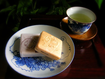 今年は、一月前まではまだ確実に夏だったと思うのですが…。急に冬が来たようでございまして、それがしが棲んでおります辺りも、山茶花や椿がどっと咲き乱れる季節と相成りました。今朝、お幸ちゃまと仰せになるお犬さまとお散歩をいたしておりましたら、みかん畑の脇の斜面にお茶の木が一株ございまして、ちょうど花が咲いておりますのを見つけました。みかん畑の中のお茶といえば、洞庭山の碧螺春でございますが、昔はこの辺りでも、みかん畑の中にお茶の木がたくさん植えられておりましたが、今ではほとんど見かけなくなってしまいましたねぇ…。で、お茶の花でございますが、めしべの辺り、椿というよりも山茶花に似ておりますが、ぷっくりした花弁は、なにやら梅のようでもあり、いや、しみじみと眺めましたら、なにやら愛らしゅうございます。ということで、なんとなく昔を懐いつつ、今朝は豆子郎をいただきました。山口銘菓に山口外郎というのがございまして、これが外郎とだけ申しますと、名古屋の外郎と商標権だかなんだかの問題が生じてヤヤこしいハナシになるシロモノなのだそうでございますが、あっさりとしてなかなかに美味しいものでございます。ナンでも名古屋の外郎は米粉を使うんだそうでございますが、山口外郎は小麦粉のデンプンなのだそうでございますよ。本来のものはワラビ粉なのだそうでございますが、今このワラビ粉100%の昔製法外郎は、田原屋さんが御遣い物等の予約限定でお作りになっていらっしゃるそうで…。で、それがし、数ある山口外郎のなかでもこの豆子郎が好きでございまして、他の外郎とはちょっと形が違うのでございますが、それにもこの名前にも所以がございますそうな。なんでも、とある何代も続いた外郎屋さんがお店を閉めることになりました折、そこの製法をそっくり引き継いだのがこの豆子郎の初代さんなのだそうでございますが、その時、すべてを教えてくださったお方に義理立てをして“外郎”を名乗らず、“豆子郎”すなわち“トーシロ”と名付けてこれを販売したのだそうでございます。ですから、あえて形も従来のものとは違え、くし型みたいなのにしたのだそうで…。御堀堂の生外郎もよろしいのですが、それがし、この小豆の入った生絹豆子郎がなかなか気に入っておりまして、山口に参りましたら、そのあっさりした甘みとプニョプニョ感に呼ばれて、必ず連れて帰ってしまいます。新幹線口や空港など、交通の要所にお店があるのも、つい、呼ばれてしまう大きな要因には違いありませんが。。。ということで、本日はこの豆子郎でお茶をいただいて…と。ジツは昨日山口から帰って来たのでございますが、生絹豆子郎と申しますのはいわゆる“生”でございまして、真空パックなどにもしていないのでございますが、当然のことながら日持ちがいたしません。しかし、生でしか味わえないそのプニュプニュ感がたまらないワケでございまして、しかも、そのプニュプニュ感は当日の方が勝っているわけでございます。まさに、風味は一刻を争う、だそうでございます。山口へお運びの節は、是非、お帰りの新幹線や飛行機の中で、このプニュプニュ感をお試しなさいませ。名古屋の外郎しかご存知ない方には、ちょっとショーゲキの食感でございます。。。いえ、それがし、山口物産協会の回し者でもナンでもございませんが~(笑)