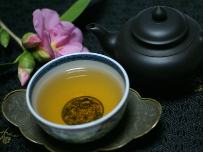 「白椿さま、このお茶は…。」「意翔村の茶仙さまの蜜香烏龍ですよ。もう一昨年になりますか…2005年11月にいただいてまいりましたから、一年とちょと、お休みいただいていたことになりますねぇ。」「蜜の香りが際立ってますのね。しかも、レンゲ蜜のような香りですわ。」「蜜香烏龍という名の所以でございますね。しかし、この甘い香りと対象的に、ボティはなんとも切れ味すっきりで、それでいてなんともまろやかな…。口に含むなり、次々と繰り出されるそれぞれ異なった味と香りに、なんだかドキドキいたしますね。」「ん…それに、そこはかとなく感じる酸味が、咽喉の奥でゆっくりと甘みに変わってコロコロ転がるようなカンジがしますわ。」「蜜の香りの後でふっと湧き上がっては通り過ぎる花の香り…これにもうっとり~でございますね。」 「凍頂烏龍くらいの火焙でしょうか。丁寧に揉捻されてキュッと締まったその姿、艶かしく輝いて、なんとも美しい纏足のようではありませんか!」「え゛……?」「おや? 纏足をご存じない?」「あの…白椿さま、いったい何時の時代のカタなんですの?纏足がウツクシイだなんて…、ワタシが生まれた頃には、旧体制の忌むべき悪習以外のナニモノでもありませんでしてよ。」「いや…、ほら、茶底もきれいですね~。しっかりと硬くなった葉、ほのかに残る葉の周りの赤みは、きちんと発酵が進んでいる証、いや、いいお茶です。」「……。」