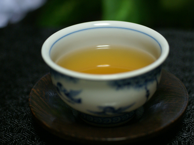 庭木どころか裏山の雑草まで死滅しそうな旱続きの夏でしたが、今日、やっと一息つけそうな雨をいただきまして、おかげさまで今日は水遣りから解放していただけるかと思いますと、嬉しくなりますね。嬉しついでに、半天腰なんぞいただいてみようかと思ったりいたしまして、いただいた次第でございます。このお茶は、2006年5月に香港の樂茶軒で求めて参ったものでございますが、2004年のお茶でございます。樂茶軒では、不作の年のお茶は仕入れないそうでございまして、また焙煎加減もかなりしっかりとした炭焙でございます。「ちょうど炭臭さが取れて来る頃ですよ」おネェさんはそうおっしゃってましたが、もう少し寝かした方が、奥に秘めたる香りが引き立つかも・・・。そう思いつついただいたわけでございます。しかし、大陸のお茶屋さんでは、必ずまず洗茶をなさいますが、それがし、洗茶をいたしますと、どうしても香りが弱くなるような気がするのでございますが・・・。これもひとえに、それがしの淹れ方のせいでしょうか。。。そうなのでございましょうね。。。なにしろ、試飲の際おネェさんが淹れてくだすったお茶は、それがしが淹れるお茶よりもずっと香りがよろしかったのですから…。とはいえ、一口含むと、ぱっと膜が貼ったようにお口の中が滑らかになりまして、軽めのボディにトーンの高い香りが、いかにも半天腰らしいお茶でございます。