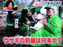 昨日の「天才!志村動物園」にうさぎの問題が出てきました♪うさぎの上の前歯は何本か? 2本じゃないから“問題”になっているのはわかってるんですけどね~。私の回答は・・・「???2本じゃなかったっけ???」 へえ~うさぎの前歯について次のことがわかりました。1年で10cm以上歯が伸びる小さな歯が上下の前歯の長さをバランスよく削ってくれる というわけで答えは・・・「うさぎの上の前歯は2本ではなく4本である。」ブログランキング皆さまのクリックによって「うさぎ生活」に一票入ります。管理人の励みになりますので応援お願いします♪ 「ぽちっとおしてね♪」うさぎ用品・エサ取扱店e-ペット屋さん | 小動物専門店ヘヴン | ペットゴー | Petit Lapin プチラパンぼちぼち更新中♪