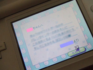 朝、いつものように電車の中でニンテンドーDSのどうぶつの森をしていたらとても嬉しいことが旦那さんからのお手紙が届いていたのです。家に帰って旦那さんに「ホワイトデーのお返しありがとう!!」とお礼を言ったのですが「え?え?何のこと???」と旦那さん。「どうぶつの森にお手紙が届いてたよ♪」と言ってもしばらく「???」の旦那さん。どうやらかな~り前(バレンタインデーよりも前)に送っていたらしくてすっかり忘れていたみたいです。朝の電車でこれを見て泣きそうになったというのに~。話は変わりますが、職場の人にこんな↓チロルチョコをもらいました。 青梅味!?食べた人の感想はかなりやばいそうです。お茶で口直しが必要だったそうなそんなことを言われて食べるのを躊躇している管理人♪ねずみでした。リッピは今日も元気です♪ブログランキング皆さまのクリックによって「うさぎ生活」に一票入ります。管理人の励みになりますので応援お願いします♪ (1日1クリック有効です)うさぎ用品・エサ取扱店e-ペット屋さん | 小動物専門店ヘヴン | ペットゴー | Petit Lapin プチラパン