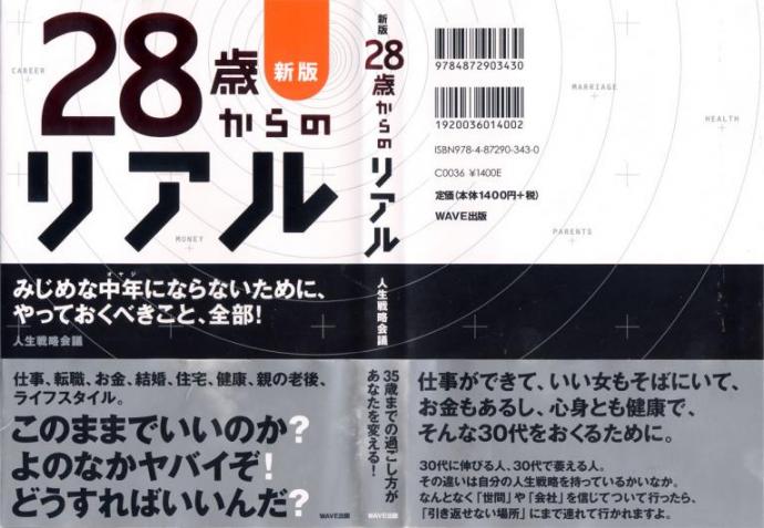 いつもありがとうございます。ツイてる抗加齢(アンチエイジング)実践家てるです。毎日毎日、多くのステキなことがあり、感謝しています。私が発明しているのは、「人類を救う宇宙人」であるという可能性です。数年前にでた「28歳からのリアル」は、私の年齢で読んでも非常に参考になる内容でした。23日JR上野駅構内の書店ででたばかりの「28歳からのリアル新版」を見つけて一気に読みました。20代から30代が読むと非常に参考になると思います。人生は35歳までに決まるというのは当たっていると思いますが、人生はいつでも再起動でき、私は50歳で再起動して大きく好転しました。老後3大不安(病気、貧乏、孤独)解消の支援をして喜ばれています。内容紹介仕事ができて、いい女もそばにいて、お金もあるし、心身とも健康で、そんな30代をおくるために。 10万部突破のヒット作「28歳からのリアル」の改訂版数値・統計・固有名などを最新化し、新しい法律・制度にのっとった内容。まさに今のリアルに肉薄すべく大幅なリニューアルを施しました。 カバーの折り返し人生は35歳までに決まる。残された時間に必ずやっておくべきこと全部目次1 仕事 毎日がつらくありませんか。 もしも生まれ変われたら、と思うことはありますか。 このままでいいのか、それとも、このままではダメなのか。 すべてはあなたが決めることです。2 結婚 この先50年を見すえて、悩んでみよう いま、28歳の時期に結婚について悩むということは、今後50年間の 結婚生活だけでなく、残りの人生の納得度にも影響する重要なことなのです。3 お金 お金について考えるということは、残りの人生にどれくらいのお金が かかるのかを計算し、そのためにいま、なにができるかを検討すると いうことです。 28歳とはつまり、「なんとかならない」ものを、「なんとかする」ための 第一歩を踏み出す時期なのです。4 住まい 「家」のことを考える場合は、賃貸か購入かという細部よりも、 どんな人生を送るのかという「ライフプラン」を考えることが、何よりも大切です。5 健康 過ぎた 28年より、これからの50年 ホントに怖いのは病気でも老化でもなく、健康管理ができていない状態で、 のほほんと生きることなのです。 できるだけマシなほうへ進むために必要なのが、経験、知識、知恵。 これらを使って、できるだけ身体を長持ちさせていくことが非常に重要。 うまく老いていくための対策は、いますぐにはじめなければならないのです。6 親 親はどんな「最期」を期待しているか 親の死について考えるということは、自分の生について考えるという ことでもあります。 28歳のみなさんにとって、決して遠すぎるテーマではないはずです。7 趣味 人生をパッと明るく開くためには、前向きな姿勢が欠かせません。 そんなあなたの心意気に、ちょっと「かっこ良いオジサン」の兆しが見えます。8 常識 基礎さえできていれば、あとは慣れと経験で常識力が磨かれていきます。 人生の本番はこれから。いまならまだ間に合います。著者について20~40代の男女、11名の構成員からなる「人生設計」を考える会。仕事にしろ、結婚にしろ、住まいにしろ、ありとあらゆるライフスタイルが変化しつつある中、「ふつうの幸せ」を手に入れるためのちょっとした知恵とコツとは何か?ということを日夜、調査・研究・報告し続けている。