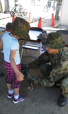 さて今年もやってきました。今年はレンジャー体験無事に出来ましたヾ(〃^∇^)ノわぁい♪うんうん可愛いね~おとなしく待ってることができるようになりましたお次は制服試着体験今年は海自のセーラー服たみまるも来てました偵察部隊のバイクにも乗せてもらえました訓練展示 空砲でもびっくりしますw(゚o゚)w オオー!でもかっこいいです隊員食堂でお昼を食べました(安いです)毎年日差しがきついのでそろそろ帰路につきます(笑)