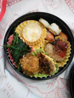 娘ちゃんの弁当の写真撮り忘れました(苦笑)だから私のを(笑)カップに入るようにミニお好み焼きも作りました別の箱におにぎりがあります娘ちゃんのはほうれん草入ってませんPTAさんの中で双子ちゃん、小学生の遠足弁当、旦那さん弁当作って自分のもすると5個だーと嘆いてた人がいたので、私作るよーと言いました(いいよー悪いし~と言ってたけど大丈夫よ~と言うことで)喜んで食べてもらえました遅れてきた役員さんがパンを持って来てくれましたこのパン美味しいです!!サンドイッチに梅を使ってたりするんです中山寺駅付近だそうです調べたら食べログで出てたhana (ハナ) - 山本/パン・サンドイッチ(その他) [食べログ]梅で思い出した自家製梅干しを持って行きました疲れがみなさんたまってるのが見えたから梅干しも絶賛していただけましたお腹も満足さてテント張りやくい打ちなかなかやることが多いですが明日の運動会のため帰ったら昼寝しちゃいました