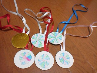 もうしんどくて遅刻です、、、今日は運動会に配るメダルの後ろ(幼稚園名)シール貼もう内職ですな