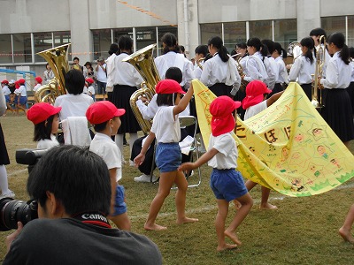 晴れました、役員特権で早く来ましたがもういいなぁーと思ってた場所が取られてました(苦笑)今年はクラス旗を持って行進するのがありまして娘ちゃんが選ばれましたしかも昨年なかった中学生の吹奏楽を呼んで生演奏つきそれだけですごく豪華です私は受け付けしてたので少し見れなかったですが父や旦那様がちゃんと写真に収めてくれてました はじまりのあつまり ラジオ体操 年少リレー(みんなで力を合わせて、よーいどん!) 綱引き 年長(力を合わせて綱引き合戦) PTAクラス対抗綱引き 保護者 年少リズム(小さな星の子の冒険)←我が子はバッタクラスです 親子でぐるりんハイポーズ 全園児親子 ボール演技年長(レットイットゴー) チャレンジタイム年少から サーキット チャレンジタイム年長 竹馬 いい音鳴らして よーい ドン! 未就園児 異年齢 パラバルーン(心のファンファーレ)全園児 みんなで一緒に玉入れ 全園児 来賓 敬老 小学生など リレー(つなごう心のバトン)年長 おわりのあつまり メダルをもらいます役員、一役は結構バタバタと準備してましたが楽しかったです今年でもうるっときてるので来年は泣くかも(笑)写真はいっぱいあるけど載せきれません(苦笑)
