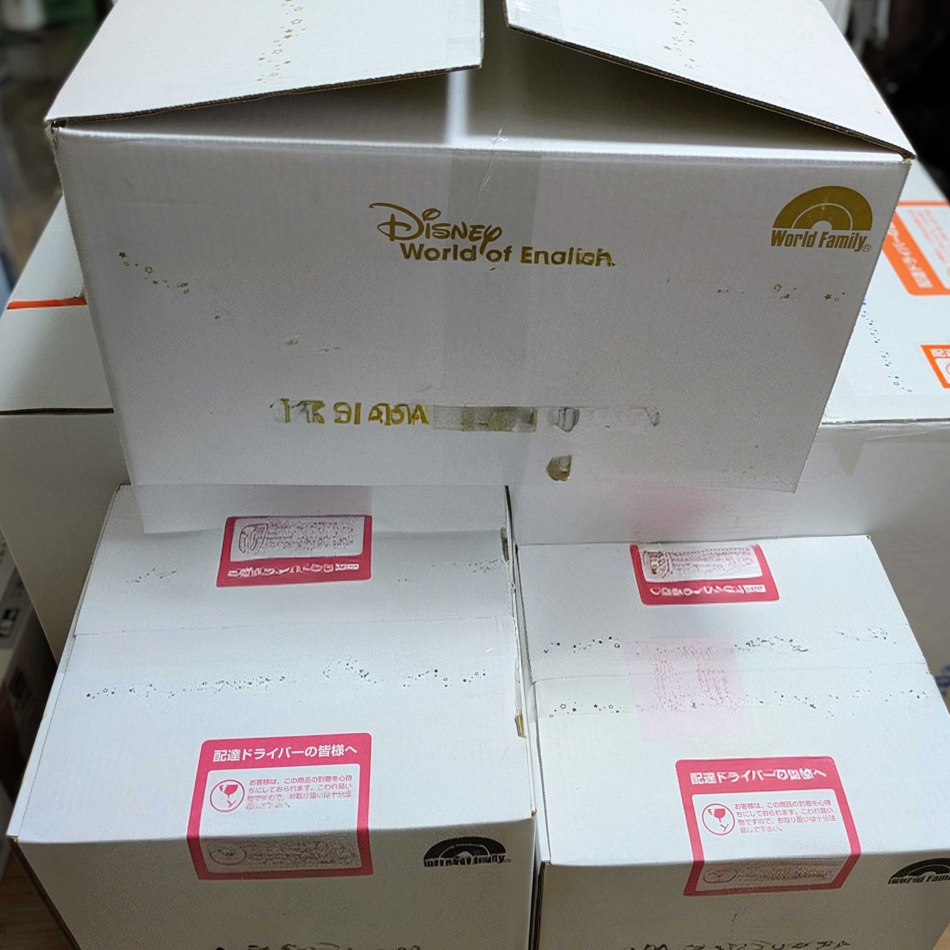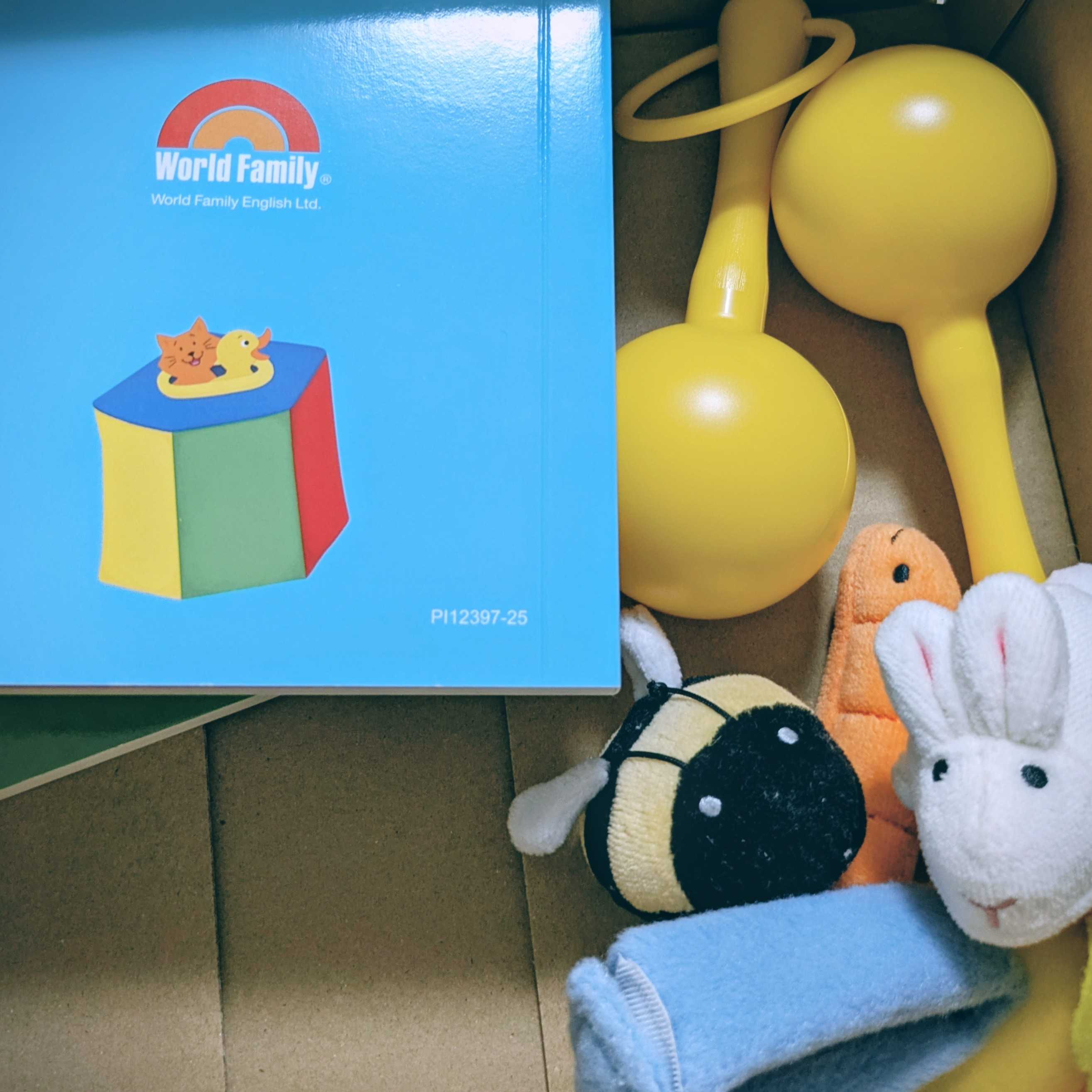 ついに、届きました!※画像は加工しています※なんと、段ボール6箱!!棚まで付いていたので、結構な量でした。箱の側面にそれぞれ何が入ってるのか書いてて、「最初にこの箱を開けてください」って書かれたものがあるので、迷うことはなかったです。マニュアルが入っているので、それに沿って進めていくみたい。0〜3歳はプレイアロングというものから始めるよう。ディズニーキャラは出てこない、とても基礎的なものでした。それから始めればいいのかと納得した私は、プレイアロングだけを出し、他の教材には手を付けませんでした。とりあえず、年末まではそれだけで遊ばせてみようと思います。ちなみに、プレイアロングは歌があるのですが、それに沿った絵本やおもちゃがありました。タブレットがあるので、それで映像の入った歌が見れます。もちろん歌だけでも流せるし、絵本もタブレットで見れます。しかも、絵本は読んでくれるので、ちゃんとした英語で絵本を読み聞かせることもできます。ただ、私はタブレットはまだあまり見せたくないので、テレビにつなげる付属品を使って、テレビでしばらくは見せようと思います。2歳の子が今日から始めてみて、どう変化していくのか…ワクワクです。最後までご覧いただき、ありがとうございます!