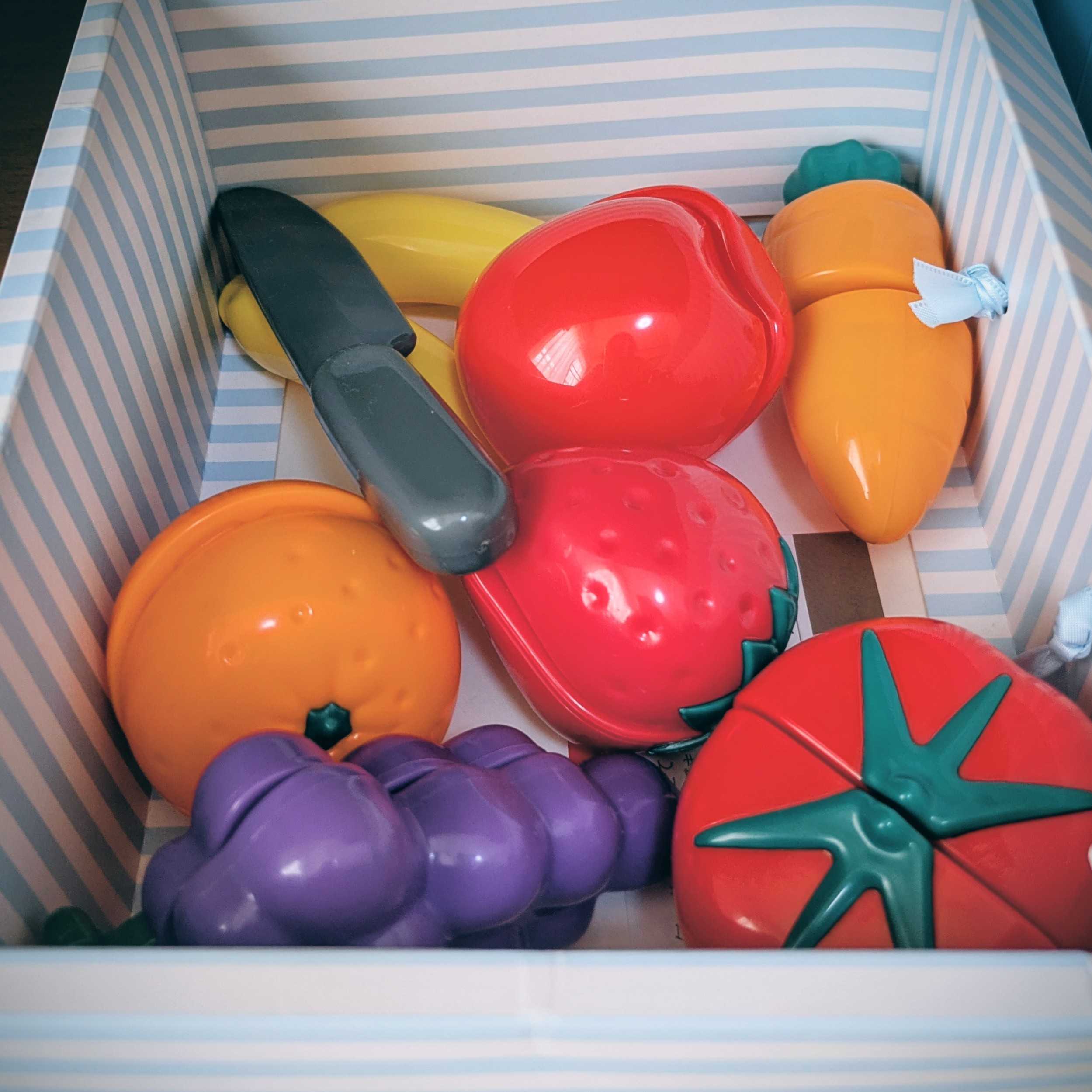 ついに、プレイアロング3まで解禁しました。本当はもう少し時間をかけて3までいくつもりでしたが、内容が今の上の子にちょうど良さそうだったので、早めに見せることに。数を数えたり、車の歌があったり、カップを積み重ねたりもとに戻したりなど2,3歳にいいものでした。英語を学べるのはもちろんですが、体を動かして一緒にできるのも、この教材のすごくいい利点だと思います。しかも、子どもが急におもちゃでボールを食材に見立てて、切る動作をしているのを発見。これは、あのおもちゃを使わなければもったいない!と思い、すぐにプレイアロングのおもちゃから出してあげました。まさか、いいタイミングでぴったりのおもちゃがあるとは驚きです!プレイアロング3の中に、このおもちゃを使ってシェアしようというものがあり、一緒に遊びながら、その歌を聞きました。本人は食材を切るのに夢中で、歌には全く興味を示していませんでしたが…笑こんなふうに動作と歌が関連していけば、英語も出くるんですかね。焦らずゆっくりをモットーに続けていきます。最後までご覧いただき、ありがとうございます。