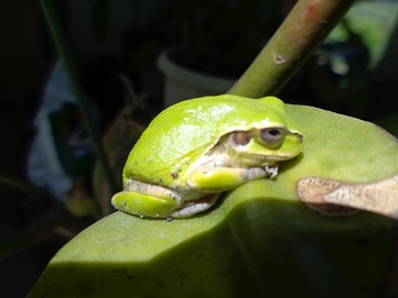 ナイスバディのアマガエルくん ここがお気に入りずっと鎮座しています