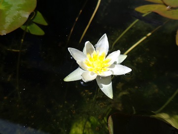 ほらほらメダカの水盤のひつじ草も咲きはじめましたよ