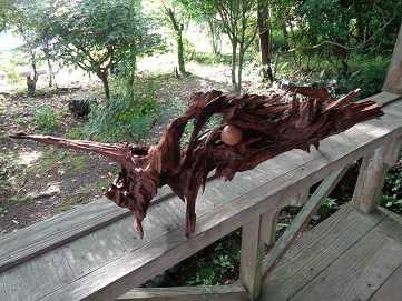 工房の奥の方で静かに過ごしていたこの素材 再び目覚め息をふきかえしました 積もった埃をはらい 磨きなおしオイルを塗ってしあげました ずっしりと重いのです 木の芯の部分だけがのこってこんな形になりました 「ユニコーン」みたいだと初代は言っています 人の手がはいっていない造形です ずっと眺めていてもあきません もう梅雨が明けそうです いよいよ 本格的な夏がやってきます 何年ぶりかの「クワガタ」と遭遇 初代も大喜び まだ体には土がついています でてきたばっかりかも・・・ 初代は庭のコナラの木の根元にそっと置き「頑張れよ!」 早めの夏バテに見舞われた初代と看板娘 季節は待ってくれません 庭には夏を告げる「ネムの花」が落ちはじめました やることいっぱい 暑さになんか負けてられません 「お~い ちょっと来てみ・・」の声に誘われ一日がはじまります