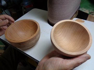 7月に誕生した赤ちゃんの「お食い初め」のための器を頼まれ制作中です 「 こんな感じのがいいなあ~ 後で離乳食のときにも使えるものにして・・・」 写真を見せてもらったり 既製品のサイズを参考にして初代はとりかかりました サクラの木を選び さっそく彫りはじめいよいよ佳境にはいっています ご飯茶碗、お汁茶碗そしておかず用のお皿 もうちょっと時間がかかります 朝から磨きに入っていると いつものおじさんから電話です 「 今、白菜の苗を植えよるんじゃけど 苗を取りにこんかえ・・・」 「 悪いなあ もろうてもいいんかえ・・・」と いいながら苗をいただきにいきました このまえ 畑をおこして石灰を蒔きあとはどこに何を植えるかと話をしていたところです さあ 急がなくっちゃ 明日には植え付けることにしました これだけ苗があるので冬の間の白菜はOK うまくいけばいいなあ~ だって 大問題があるのです 「イノシシくん」大暴れ 毎朝のようにお出ましになり畑の横っちょの土手をボコボコに掘り返し土手の境のブロックを なぎ倒しています なにかいい方法はないものか・・・ 近所のおいちゃんたちも一同に 「ども ならんなあ~」