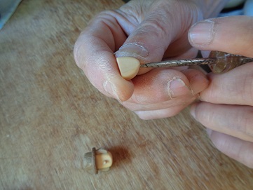 12月に入り ようやく向かいの山の木々が紅葉してきました 店のお客さんから分けてもらったメダカくん だんだん年数を重ね世代交代を してきましたが 店の前の石臼の中の赤いメダカくん何匹も泳いでいたのですが とうとう一匹になってしまいました 落ち葉がいっぱいです ついこの前まで2匹でゆっくり泳いでいたのですが 今年の暑さで消耗してしまったのか とうとうおひとり様 だれにも邪魔されずに気ままに過ごす毎日が充実しているのか 元気です でも 毎朝 初代も看板娘も気になってつい「 おはよう・・・今朝も元気だ よかった よかった」 小鳥の箸置きの制作のあとは「スプ~ン」づくりに邁進中の初代です 今はノミでトンカントンカン、コリコリ、サクサク彫っています さてさて 仕上がるのは・・・
