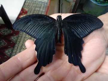 今日も素晴らしい青空が広がっています 雲一つなく 昼間の暑さを想像して看板娘はちょっとびびってしまいました こんなにも暑さに弱いのかと・・・ 初代といえば元気もりもり 草刈りに仕事にと一日中大奮闘です この前、小さなてんとう虫を作りましたが またまたてんとう虫づくりにいそしみ こんな作品を完成させました このシリーズはまだまだ続きます お次はどんなものになるのかなあ~ 蝶はたくさん花に飛んできて蜜を吸っていますが ゆっくりと止まっていることは 少なく 羽の模様やかたちをたしかめるのが大変です 「アゲハ」の仲間も飛んできてはフワフワとあっちにいったりこっちにとまったりと しています ようやく気になっていたアゲハをはっきり観察することができました 微妙な黒 羽の表側です 羽の裏側 写真では色がよくわかりませんが それはそれはきれいな緑色がかっていて 黒地に鮮やかな赤の模様がはいっています このアゲハは残念ながら工房の入り口で飛ぶことも動くこともできずにいました 例のごとく「 おい・・これ見てみ 美しいぞ 」初代がつかまえてきました あまりの暑さにひっくりかえってしまったのか・・・ 晴れのち晴れ 時々雨になるといいなあと思っています