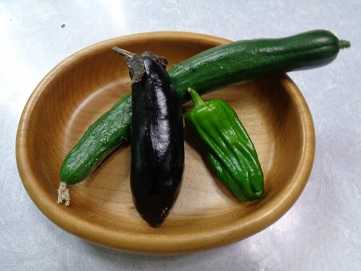 小さい畑ながら 草は元気いっぱいです 暇さえあれば 一本、二本と目についた草をひきやれ腰が痛いだの虫に刺されただの 忙しい季節です ようやく一番なりの野菜を収穫しました 見るからに控えめな大きさのキュウリ・なす・ピーマンです どうやって食べるかは・・・ 週があければ梅雨入りしそうです カレンダーにはしっかりと雨マークが一週間 続いています 長雨に備えて溝掃除をしたり庭の草むしりをしたり 大忙し 最近は極端な雨の降り方だったり高温が続いたり今までとは違う対処の仕方が必要に なっています 総員二名、初代と看板娘でぼちぼちと・・・