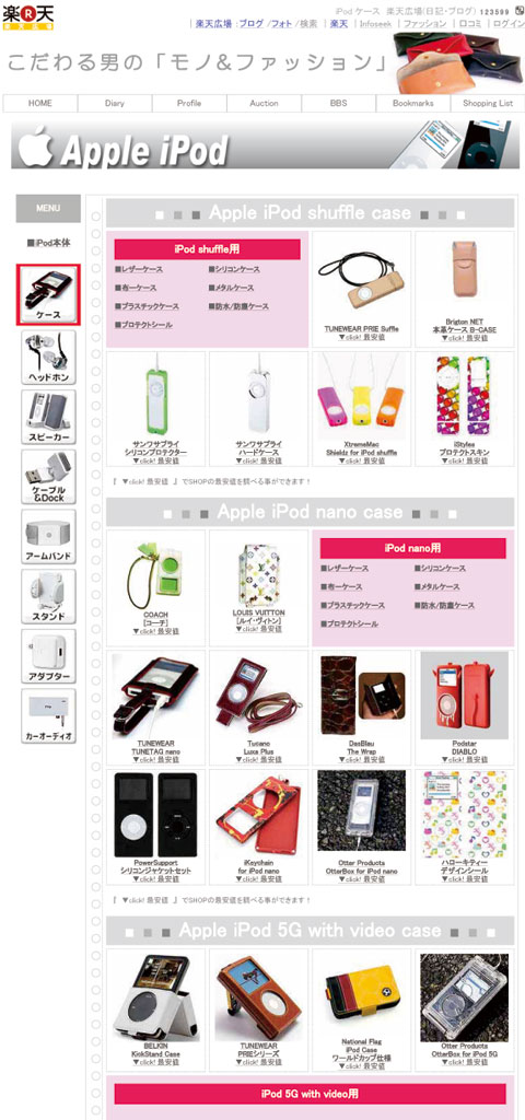 Apple iPod ケースを探すならコチラから!当ブログ『こだわる男の「モノ&ファッション」』では、Apple iPodの5G、nano、shuffle用のケースを簡単に探すことができます。Apple iPodの5G、nano、shuffleそれぞれのレザー(本革)ケース、シリコンケース、布ーケース、メタルケース、プラスチックケース、防水/防塵ケース、プロテクトシールを一発検索!人気商品はさらに最安値も調べることができます。お気軽にどうぞ!目的のアクセサリーが簡単に探すことができるiPod用のスピーカー、ケーブル&Dock、アームバンド、専用スタンド、電源アダプター/ケーブル、カーアクセサリーのページを順次、更新してまいります。ご期待ください。こだわる男の「モノ&ファッション」Apple iPod ケースを探すならコチラから▼click!↑ blogランキング 1日1クリックお願いします! ↑リンクが自動増殖オートリンクの登録はこちら by オートリンクネット[PR]「モノ&ファッション」