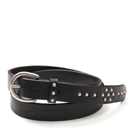 25mmのナロー(細幅)ベルトです。ベルトループと先端部分のみにスタッズを打ち込んだアシンメトリーなデザインが特徴です。無骨ながらもとても良い雰囲気を持つ”サファリ・レザー”とスタッズの相性は抜群で、大人な風格が漂います。オイルドレザーならではの馴染みの良さがあり、柔軟に身体にフィットします。