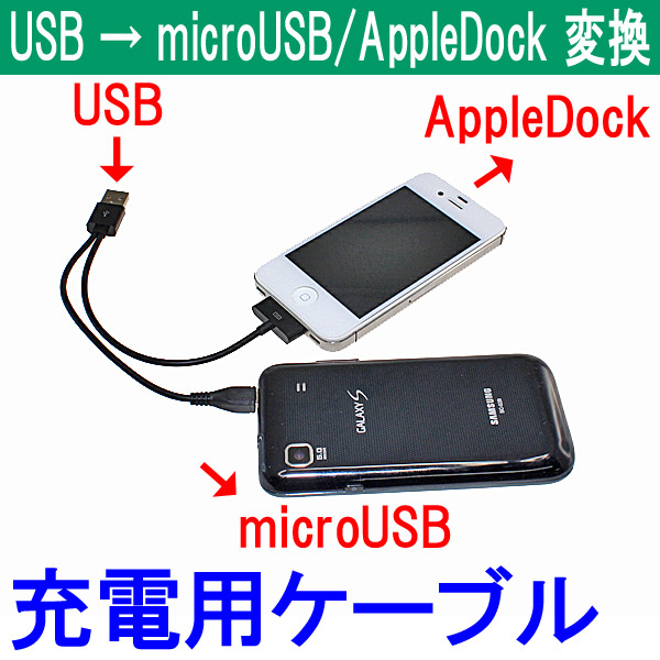USB → microUSB/AppleDock 変換 充電ケーブル DNSB-69730