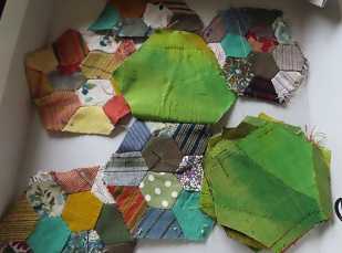 1,5㎝位の布縫い繋げ四苦八苦した、六角形何とかしたいなー