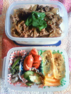 ・牛丼・卵焼き(オムレツ風)・赤ウィンナー・キュウリのおかか和え・なすの味噌炒め・おしんこ風邪、やや回復。少し桜でも見てこようっと。