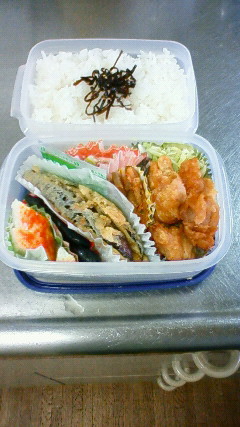 ・から揚げ・茄子の天ぷら・鯖の水煮・カニカマ・おしんこ・ごはん(こんぶの佃煮のせ)更新するネタがないので、お弁当日記でもやるか…