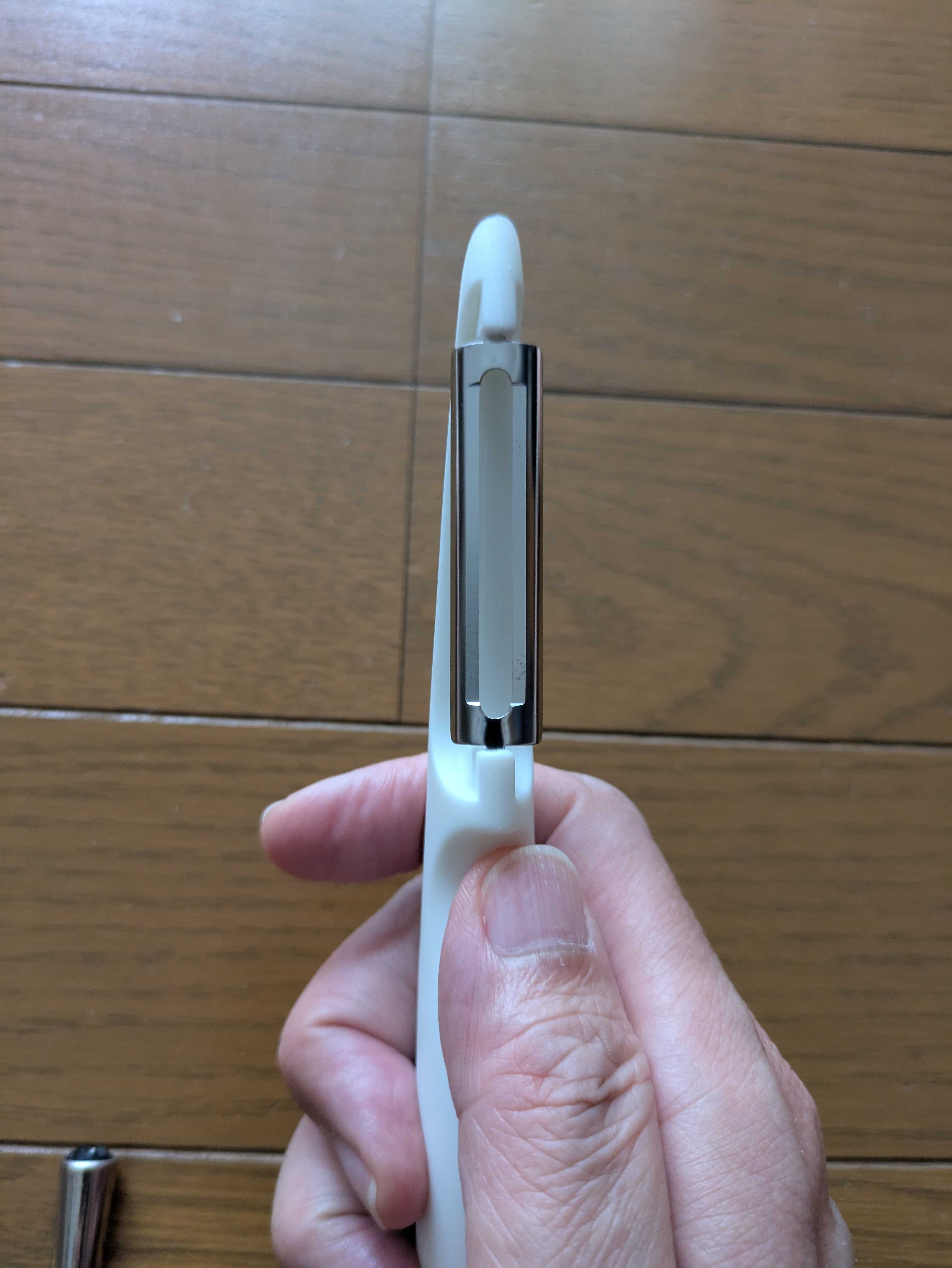 縦型なんてあるんだ。省スペースで、すんなり収まるしいいじゃん。でも、横型が主流なの見ると、使い勝手は横なのかな。食器棚のおさまりでは縦に軍配。この縦型って日本では、最近出てきたらしい。今後認知されていくんだろう。じゃがいもとか、丸いものが包丁みたいにスルスル剥ける!しかも包丁よりも綺麗な仕上がり。そして、先端についているじゃがいもの芽を取るくぼみ侮るなかれ、凄く無駄なく綺麗に取れる丸くない野菜もOK切れ味抜群で剥いた野菜の表面がツヤツヤ縦型ピーラーに変えてから手切りそうな恐怖がない!おすすめ使い方次第では、縦型の方が便利ってことあるだろう。おいおい、いい使い方が出てくるかもだ。 日本製ステンレス刃で、切れ味良くスムーズ、オクソー タテ型ピーラーOXO オクソー ステンレス タテ型ピーラーOXO オクソー ステンレス タテ型ピーラー価格:2,420円(税込、送料無料) (2025/10/8時点)楽天で購入 まるでリップのようなコンパクトピーラーリップピーラー Kitchen Bijou 日本製 I字ピーラー ( たて型 I型 皮むき器 ステンレスピーラー I型ピーラー 皮剥き器 縦型 芽取り付き ピューラー スライスピーラー キッチン 料理用 調理用 キッチンツール 下ごしらえ 調理器具 )リップピーラー Kitchen Bijou 日本製 I字ピーラー ( たて型 I型 皮むき器 ステンレスピーラー I型ピーラー 皮剥き器 縦型 芽取り付き ピューラー スライスピーラー キッチン 料理用 調理用 キッチンツール 下ごしらえ 調理器具 )価格:1,920円(税込、送料別) (2025/10/8時点)楽天で購入 フルーツナイフのように使える縦型ピーラー関孫六 縦型ロングピーラー DH3302貝印 ピーラー ピューラー 皮むき 国産 Made in Japan 関の孫六関孫六 縦型ロングピーラー DH3302 貝印 ピーラー ピューラー 皮むき 国産 Made in Japan 関の孫六価格:1,530円(税込、送料別) (2025/10/8時点)楽天で購入 3種類の皮むきができるピーラーとジャガイモの芽取り機能付き皮むき器 ピーラー 千切り 縦型回転3ウェイ皮むき ( スライサー キッチンツール 野菜スライサー 薄皮むき 芽取り 調理器具 ) 【39ショップ】皮むき器 ピーラー 千切り 縦型回転3ウェイ皮むき ( スライサー キッチンツール 野菜スライサー 薄皮むき 芽取り 調理器具 ) 【39ショップ】価格:2,080円(税込、送料別) (2025/10/8時点)楽天で購入「いいね」ボタン「コレ!」登録。宜しくおねがいっ!!