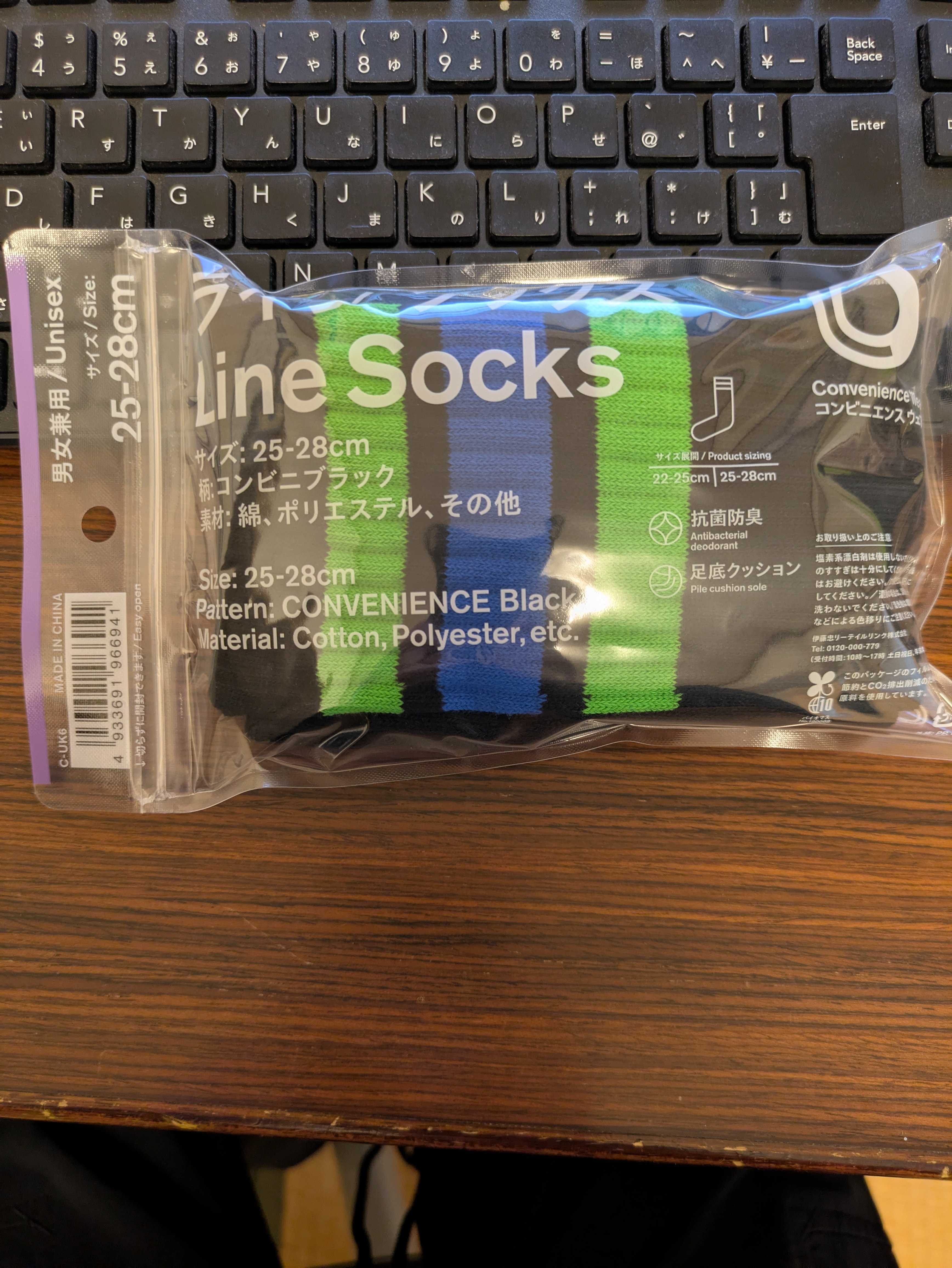 気になって気になってしょうがない。どんな色だろう、、、「コンビニブラック」コンビニエンスって確か、「都合のいい」って意味合いだった。調べると、好都合。便利。また、便利なもの。手間がいらない重宝なもの。お手軽な感じからすると、白茶けてもしょうがないみたいな、簡単に手に入るけど、品質はおざなりみたいな、そんなイメージがある。ところが、昨今のコンビニスイーツしかり、お惣菜しかり、コンビニの商品は一目置く存在。とすると、「漆黒」でさらには「色落ちなし」「洗濯しても色褪せない究極のブラック」かもしれない。「コンビニブラック」が気になってしょうがない。それで、買っちゃった。ラインソックスコンビニブラック。ひと笑い取れそうなんで、思い切って。このカラーリング、履く人いないよな。履き心地ビジネスソックスしか持っていなかったけれどもビジネスで履く機会が減ると普段履きのソックスが必要になり3足1000円みたいな。無印良品のソックスを買ったり催事場での特売のソックスを買たりと普段履きのソックスは色々試したけれどもこのソックスはいい履き心地が抜群クッション性があり足を包んだ感じもとてもいいあと数足は欲しいでも…このカラーリングはいいなWEGO MEN'Sラインソックス(R)WEGO MEN'S ラインソックス(R) ウィゴー 靴下・レッグウェア 靴下 レッド ブラウン ネイビー ブルー ホワイト パープル価格:385円(税込、送料別) (2025/10/30時点)楽天で購入CONLEAD(コンリード)バックラインショートソックス BACK LINE 003 18051701220CONLEAD(コンリード)バックラインショートソックス BACK LINE 003 18051701220価格:2,860円(税込、送料無料) (2025/10/30時点)楽天で購入【送料無料】 「お色の組み合わせを選べる2足セット」靴下 レディース おしゃれ かわいい 量産型 地雷系 パンプス ローファー スニーカーに合う送料無料| お色の組み合わせを選べる 2点セット 靴下 レディース おしゃれ ライン入り ソックス 黒 白 ブラック ホワイト 脱げない レディース 靴下 スクールソックス 量産型 地雷系 靴 厚底 かわいい ゆめかわ 姫系 ロリータ パンプス ローファー送料無料| お色の組み合わせを選べる 2点セット 靴下 レディース おしゃれ ライン入り ソックス 黒 白 ブラック ホワイト 脱げない レディース 靴下 スクールソックス 量産型 地雷系 靴 厚底 かわいい ゆめかわ 姫系 ロリータ パンプス ローファー価格:650円(税込、送料無料) (2025/10/30時点)楽天で購入 [New]2本ラインx無地ロングサイハイソックス[消臭加工][New]2本ラインx無地ロングサイハイソックス[消臭加工]価格:2,178円(税込、送料別) (2025/10/30時点)楽天で購入「いいね」ボタン「コレ!」登録。宜しくおねがいっ!!
