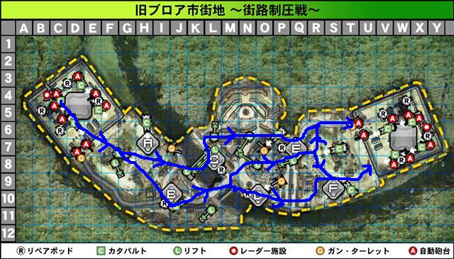 今日も今日とてバイト帰りに2プレイ!時給考えるとこれで半分近くとんでるんだよな…そろそろ控えるかOTZ機体をフル修羅に変えて今日も充実のコア凸ライフを送っておりますよ~今のマップだと主にルートは東西ともに3つあるんですが図解するとこげな感じに西側東側とはいっても大まかなんで正確なものじゃありませんwさらにこのマップになってからもう二週間目の半ばが過ぎていまさら感もあるもののネタといえばこれくらいしか思い浮かばなかったのですw本当はプレイ動画を録ってうpできればいいんでしょうが~あいにく録画できる機材もなければ近所に録らせてくれる店舗もなく…OTZっとまぁ仕方ないことは仕方ないとしてコア凸の話へ~ルートの本数が同じなので一見どちら側も平等のようにみえるもののBプラントのカタパルトを使用して一気に渡河できる西側が有利なマップさらにCプラは元より川岸の大半を射程に収める西側のガンターレット自軍ベースから相手ベースに辿りつくまでの時間も個人の体感ながらけっこう差があった気がするあ~しの立ち回りは開幕から出られれば基本的に麻でコア凸東側ならベースから丘のカタパルトを乗り継いで即Dプラへ向かって占拠せずに渡河相手がカタパルトで飛んでいったのを確認してからBプラを素通りしてベース前まで西側も丘の上のカタパルトへ乗り継いでCプラへこの時相手への牽制で占拠はしておくそしたらすぐに北の広場の方へ向かってEプラをかすめながらベース前までベースの中に入ったらとにかくAC吹かしてカチコミ!以前は41型強化手榴弾を投げて攻撃してたんだけど今は最近買えるようになったグレネードランチャーでコアをバシバシ撃ってる威力的には41とそんなに変わらないからコア攻撃には使いやすい感じでフルオートの突撃銃ヴォルペFAMと共に今の個人的なお気に入り装備になっているあっという間にゲージが2割近く消し飛ぶ様は何回見ても痛快すぎるwこのマップに限らず勝つためにはコア凸は重要な要素しかしBランクまでいくと単独でのコア凸は中々簡単に決められないもので…索敵センサーや偵察機に見つかって袋叩きにされたり運悪く相手の再出撃と鉢合わせたりベースに突入した瞬間、狙撃からCS(クリティカルショット)もらって大破したり…色々と壁があるんだけどそれがまた燃えるッあと成功したときに味方の人から送られる「ナイス!」がまた病みつきにwただぶっちゃけるとS、Aランクより下だとランクを上げるために必要なCP増減に勝利はあんまり関係ないんだよね実際、1試合終始コア凸して勝利に貢献しても全体で最下位になってCPマイナスでランクが落ちるなんてこともけっこうあるまぁ、そういう仕様だから仕方ないんだけどねっていうかうまい人らはそつなくなんでもこなすんだよな~…勝つために立ち回ってたら気がついたら色んなポイント取ってて総合1位!とかいずれなってみたいもんだw…そうはいってもお財布の事情もあるしそろそろボダブレは自重してトライの課金し直すかな~ボダブレの500円投入4プレイ分でトライは3ヶ月だからな…どう考えても財布に優しいのはトライか…ん?MHF?…一ヶ月で2000円(基本課金+EX課金)は今の懐には厳しいぜ…