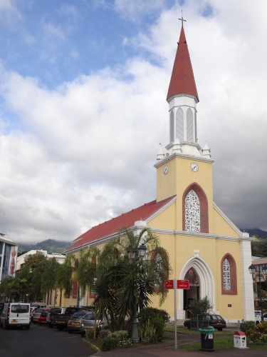 午後にフランス領ポリネシアの首都となっているパペーテの街に出かけました。南フランスの香りがする街です。きれいな教会が目につきます。大きな市場です。「タヒチ君」が日本人が経営する有名なお土産店ということで、ここで置物をゲット。その後は相棒が黒真珠の店を見たいということで、散々あちこち聞き聞きめぐりました。行くと、お高いネックレスなど勧めるお店が多くて困りました。そんなお金ないです。目の保養にはなりましたが。最後の店はボラボラのホテルにもあったお店で、残念ながら日本語店員がいなかったのですが、私が下手な通訳で、ペンダントの玉ひとつだけ買いました。ピンクとグリーンつまりピーコックカラーで、傷もほとんどなく、なかなかの良品でした。好きな球をたくさんの中から選べるのが良いです。日本に帰ってからお店で比較してみましたが、やはりタヒチの方が安いし良いです。でもいまだに玉のままの状態。いつペンダントになるのやら。その後ルロットと呼ばれる屋台村のような所で、お安く夕食。中華やイタリアンやローカルなど様々。おなかを壊すことはないとのことで、2店でおなかいっぱいいただきました。中華が無難で美味しかったです。その後、空港に向かい、楽しかったタヒチ旅行もおしまい。次は香港・マカオです。