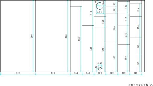 2.上図により切出した15mmラワン合板(違う材料を使ってもOK!但し15mm厚は守ってね)×2SET