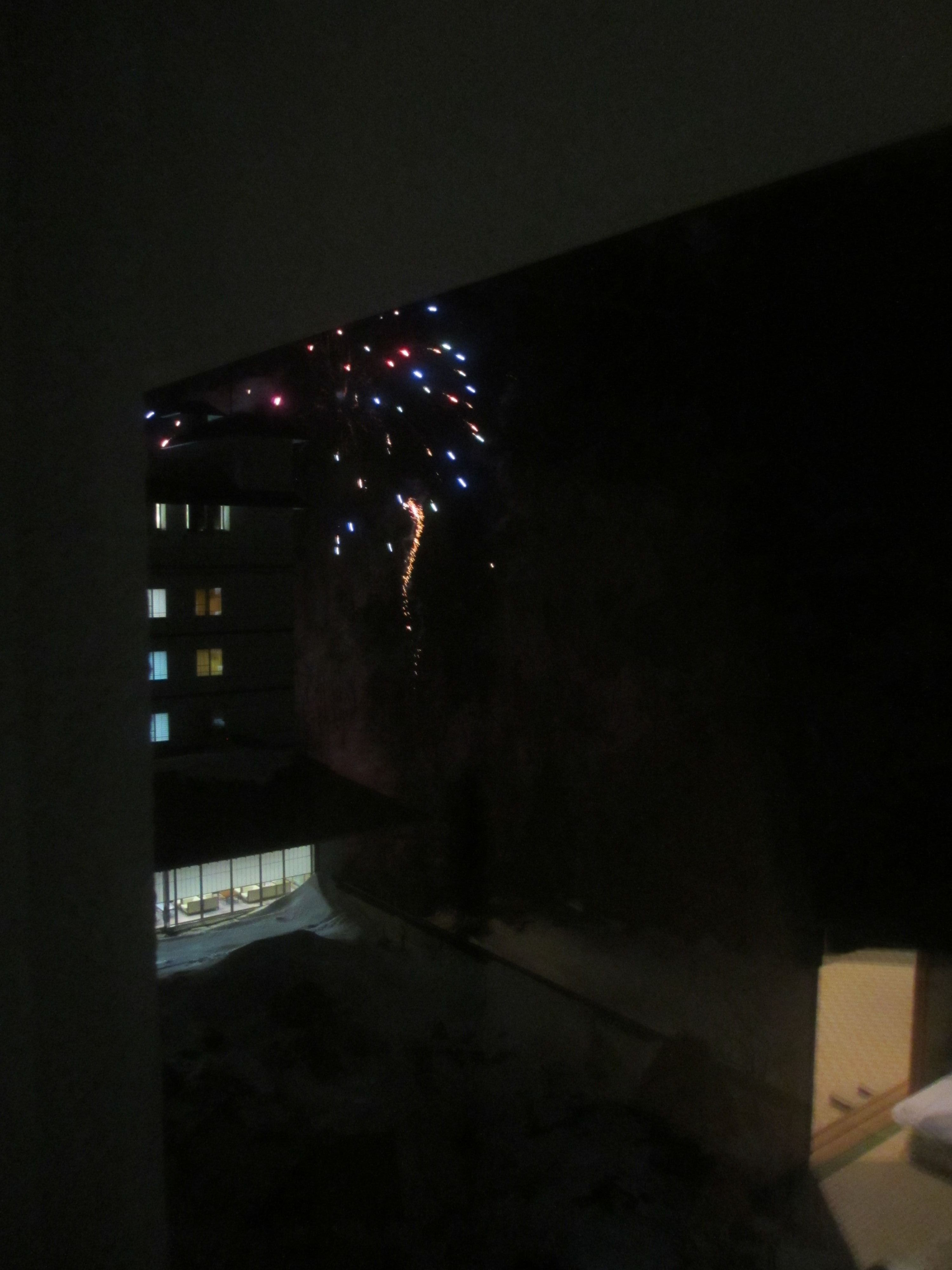 しかも、部屋の窓から、氷瀑まつりの花火まで見えちゃいました!