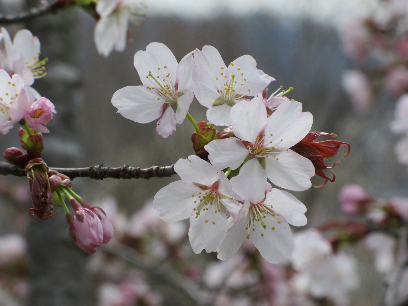 全体としては、まだこんな感じの3~5分咲きといったところでしょうか… 天気もイマイチ…