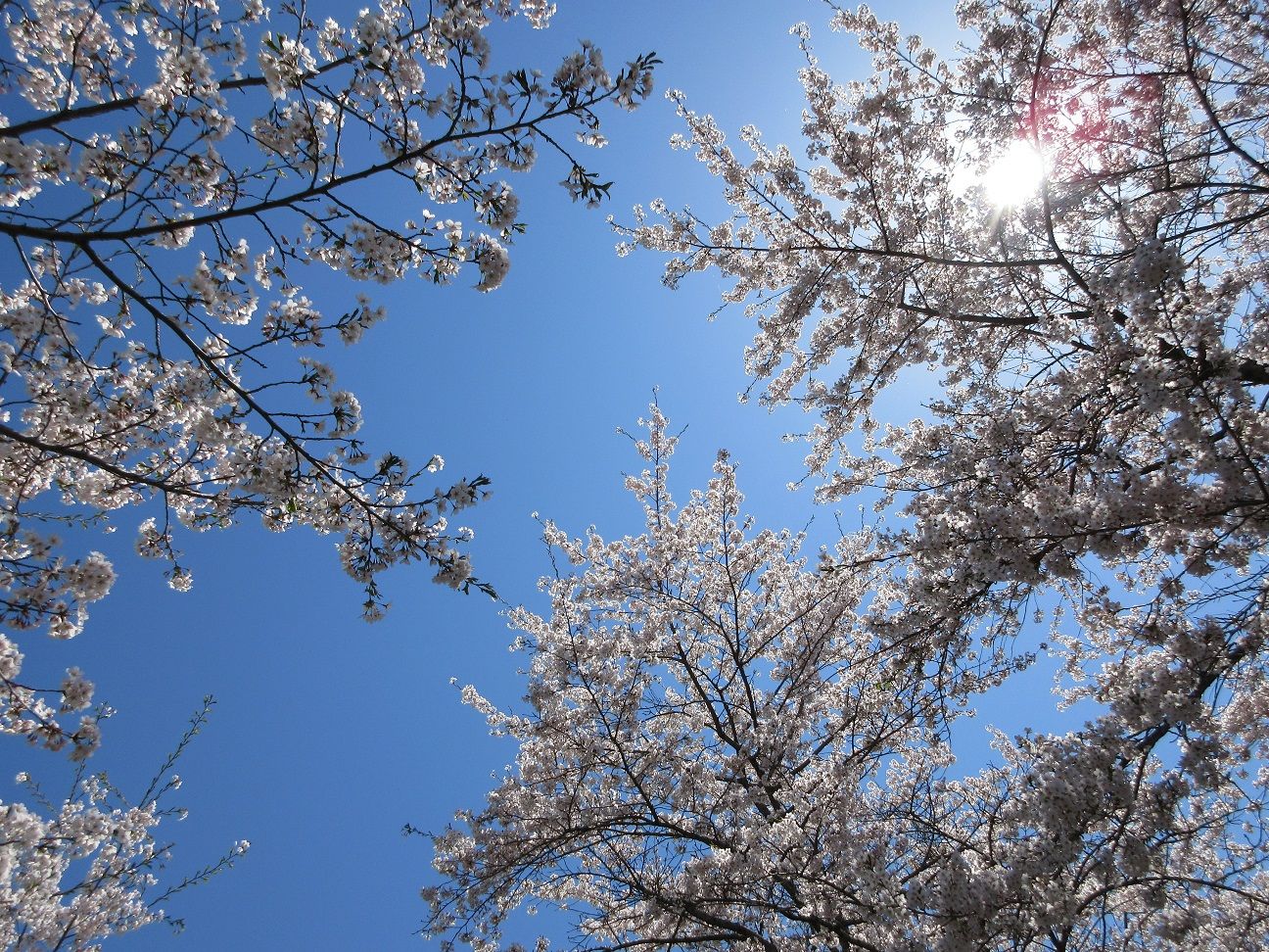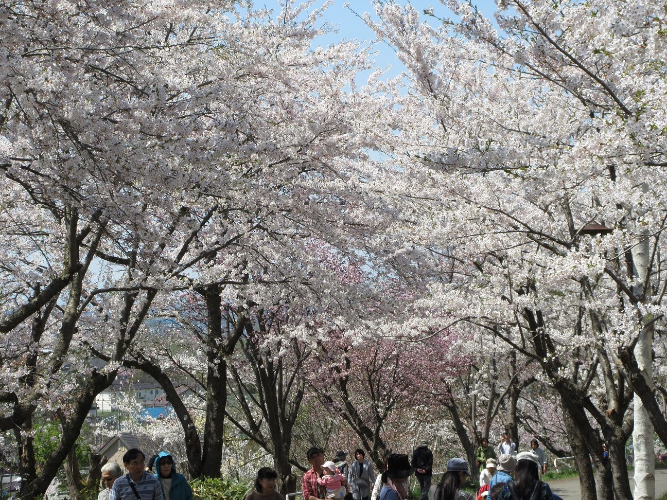 寒さに強くないソメイヨシノの北限の並木道から空を見上げると… コレがホントの五月晴れ♪